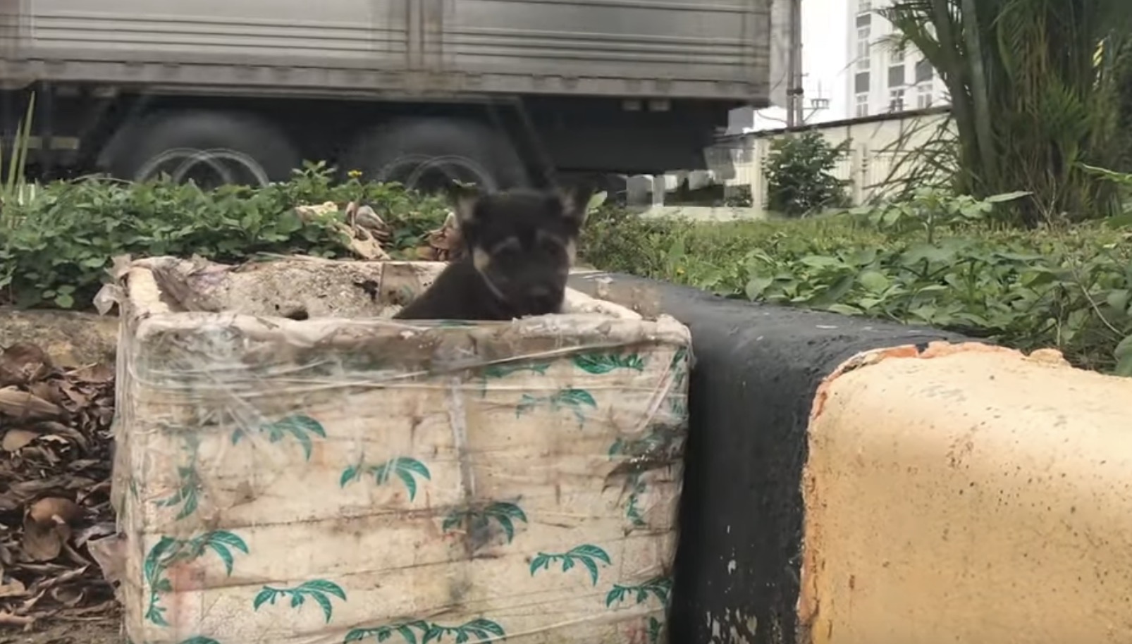 Small Puppy Dumped In A Trash Can Like Garbage, Cries Out For Help