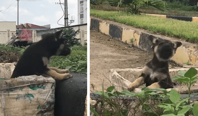 The dog was in a very harsh situation as could not do anything but whimpering in hopes to be saved. And that’s what happened when a rescuer showed up for help.