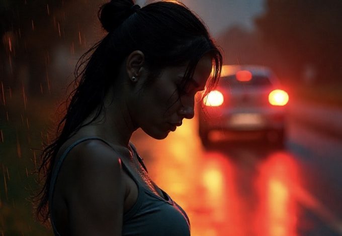 For a few long seconds, I just sat there, numb. I couldn’t move. I couldn’t breathe. The only sound was the relentless pounding of the rain against the metal roof. I waited, staring at the place where he’d disappeared, expecting him to come back—to realize what he’d done. But the road remained empty.