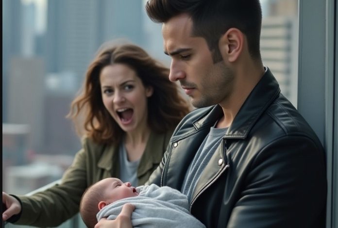 My husband, Silas, was standing on the balcony, holding our eight-month-old son, Rowan, upside down by one ankle. His tiny body dangled over the edge of the third-floor railing, his cries sharp and desperate.