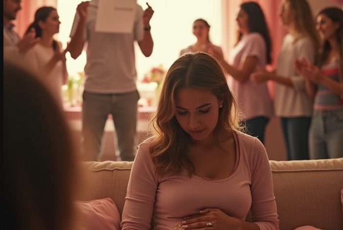 The room erupted. Chairs scraped. People rushed toward him. My aunt who had been talking about baby names dropped her gift and ran to hug him. Someone shouted for more music. The careful circle around my cake broke apart. In a blink, my baby shower became Roger’s college celebration.