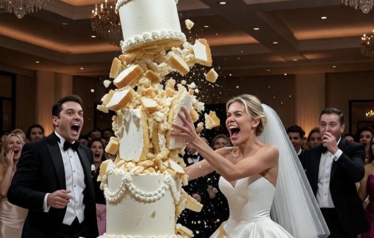 The cake swayed… then fell with a thunderous crash. The gorgeous structure exploded across the marble floor. Guests shrieked. Frosting splattered everywhere. Gold leaf floated through the air like confetti.