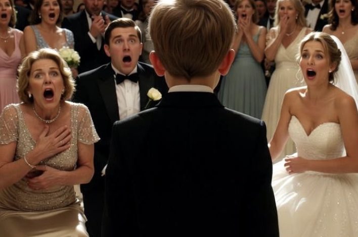 At our wedding ceremony, everything fell apart the moment my mother-in-law interrupted. She stepped forward and claimed that the baby I was expecting did not belong to my fiancé. The room erupted in whispers, and before the priest could finish speaking, my fiancé walked out and left me standing alone at the altar. Years later, when we met again unexpectedly, my son said something that froze an entire crowd.
