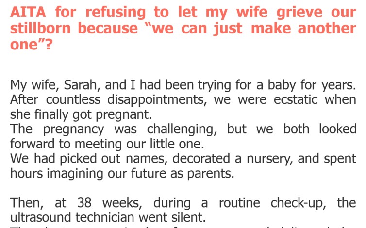 "AITA for refusing to let my wife grieve our stillborn because “we can just make another one”?"