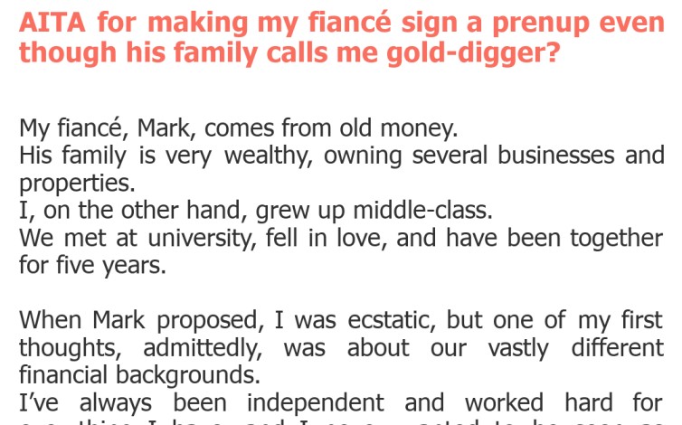 "AITA for making my fiancé sign a prenup even though his family calls me gold-digger?"