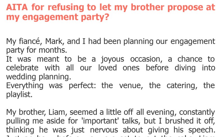 "AITA for refusing to let my brother propose at my engagement party?"