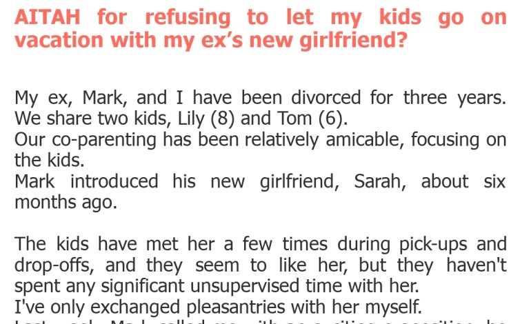 "AITAH for refusing to let my kids go on vacation with my ex’s new girlfriend?"