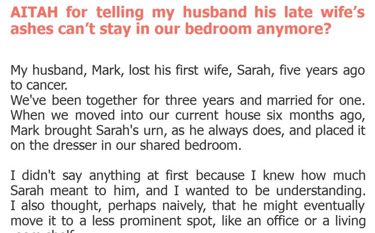 "AITAH for telling my husband his late wife’s ashes can’t stay in our bedroom anymore?"