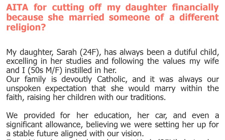 "AITA for cutting off my daughter financially because she married someone of a different religion?"