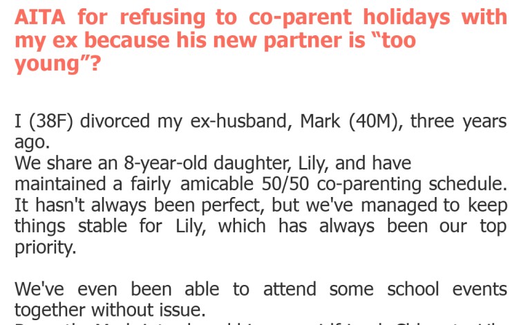 "AITA for refusing to co-parent holidays with my ex because his new partner is “too young”?"