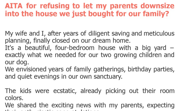 "AITA for refusing to let my parents downsize into the house we just bought for our family?"