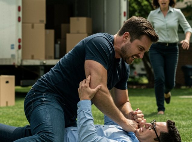 “No, no fire,” he rushed out. “But there’s a huge U-Haul truck in your driveway. Movers everywhere. They’re taking furniture out. Melissa’s outside telling them what to load.”