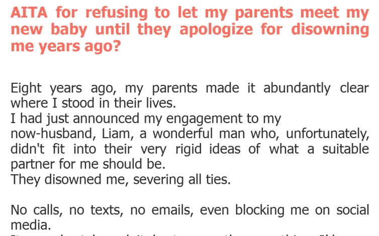 "AITA for refusing to let my parents meet my new baby until they apologize for disowning me years ago?"