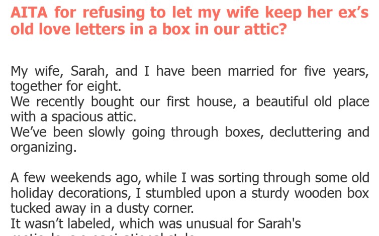 "AITA for refusing to let my wife keep her ex’s old love letters in a box in our attic?"