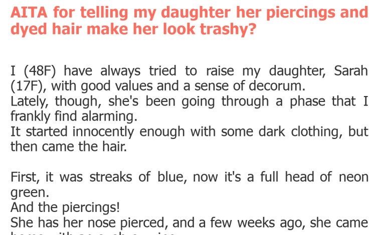 "AITA for telling my daughter her piercings and dyed hair make her look trashy?"