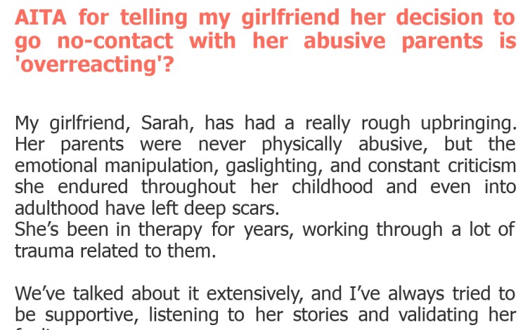 AITA for telling my girlfriend her decision to go no-contact with her abusive parents is ‘overreacting’?