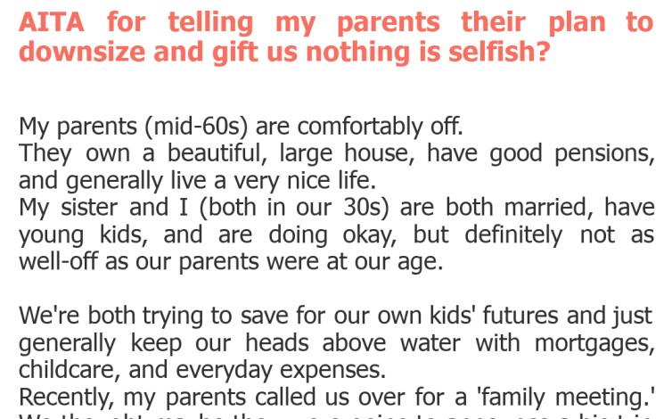 "AITA for telling my parents their plan to downsize and gift us nothing is selfish?"