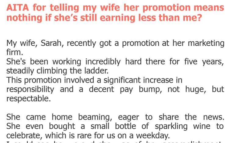 "AITA for telling my wife her promotion means nothing if she’s still earning less than me?"