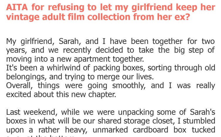 "AITA for refusing to let my girlfriend keep her vintage adult film collection from her ex?"