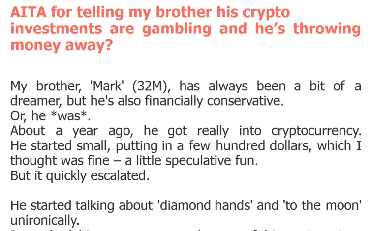 "AITA for telling my brother his crypto investments are gambling and he’s throwing money away?"