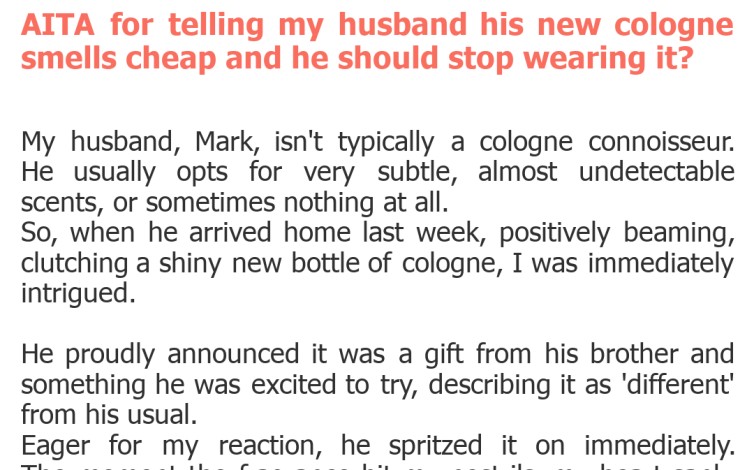 "AITA for telling my husband his new cologne smells cheap and he should stop wearing it?"