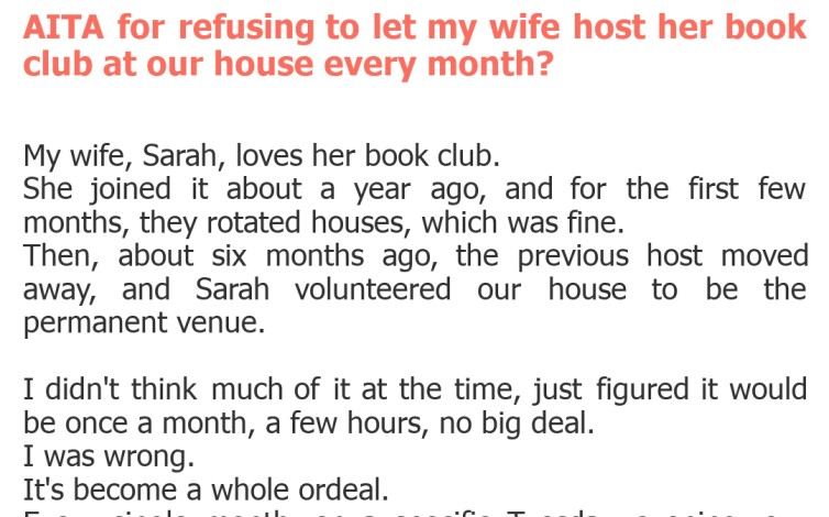 "AITA for refusing to let my wife host her book club at our house every month?"