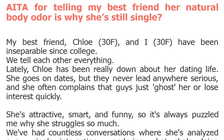 "AITA for telling my best friend her natural body odor is why she’s still single?"