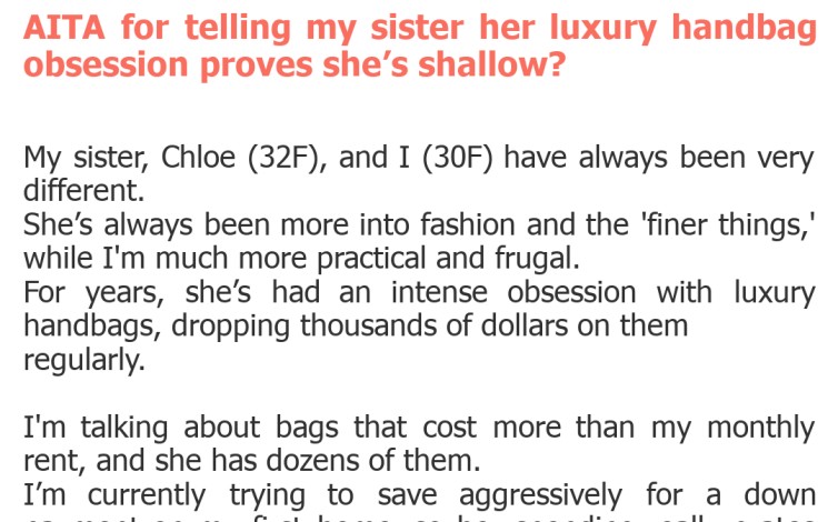 "AITA for telling my sister her luxury handbag obsession proves she’s shallow?"
