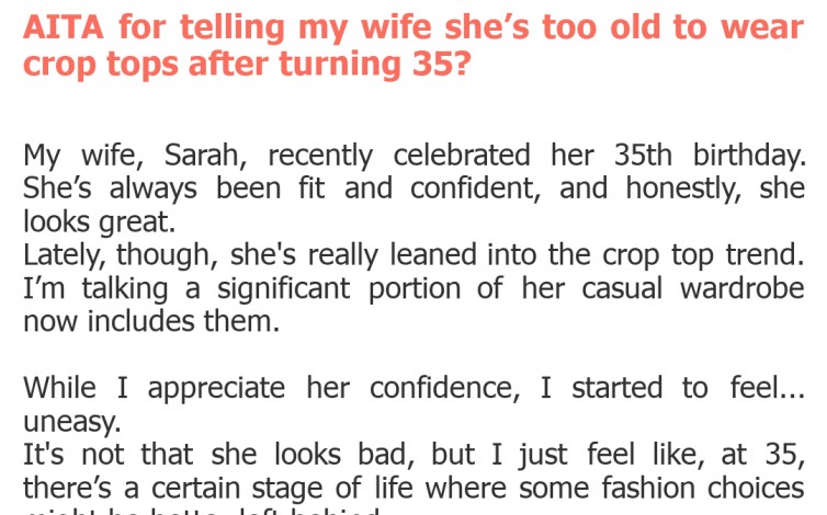 "AITA for telling my wife she’s too old to wear crop tops after turning 35?"