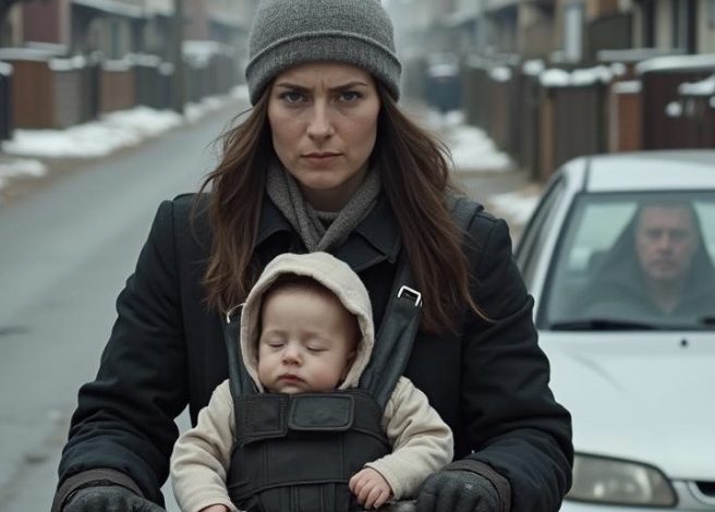 Ethan was strapped to my chest in a worn-out carrier I’d bought online. His little body was warm against mine, his face tucked in, quiet. Too quiet, I thought. Sometimes I wondered if he could already feel the tension in the house.