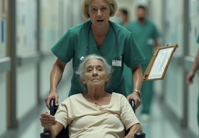 She sat quietly in her wheelchair near the billing desk. Her back was slightly bent, shaped by years of pain and quiet strength. She was seventy years old, but under the harsh white lights, she looked much older. She wore her favorite lilac cardigan, the one missing a button in the middle, and held her old leather purse tight against her chest like it could protect her.