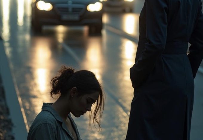By the time Julian and Chloe reached the main highway, the rain had turned into a steady, freezing downpour. Julian’s five-thousand-dollar suit was a sodden, shapeless mess. Chloe’s makeup had run down her face in dark streaks, and she had lost a heel two miles back, forcing her to limp in agonizing silence.