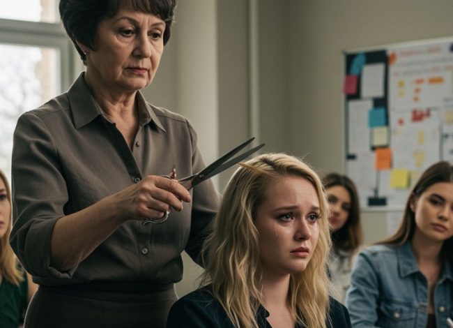 “Sit still,” Miss Turner commanded, the silver scissors glinting predominantly under the harsh fluorescent lights. She held them like a weapon, not a tool. “You’re disrupting my class with your constant scratching. You’re distracting the students who actually want to learn. Consider this a lesson in discipline.”