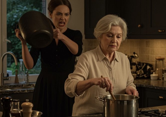 She grabbed the handle of the skillet, still holding it like a weapon, her knuckles white. “If you ruin this night for me, Martha, I swear to God, I will make sure you never see those grandkids again. Do you hear me? I will bury you.”