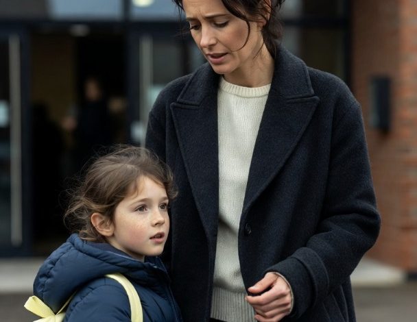 At the school entrance, Avery didn’t run off to meet her friends. Instead, she clutched my coat sleeve with both hands, gripping so tightly it startled me.