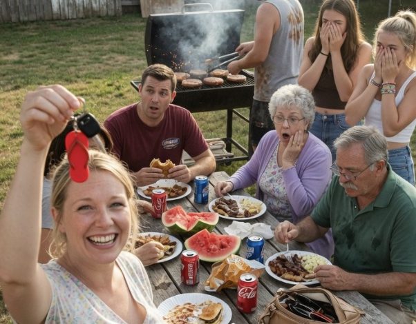 The barbecue was supposed to be ordinary, the kind of family afternoon that produces sticky paper plates, too much potato salad, and a dozen pictures no one looks at again. My parents’ backyard was crowded with folding chairs and mismatched citronella candles. My father, Leonard Mercer, stood at the grill with a spatula in one hand and the permanent expression of a man who believed all outdoor cooking made him look more competent than he really was. My mother, Denise, was at the patio table slicing watermelon into precise triangles, her bracelets clicking softly against the bowl every time she moved. My cousin Daniel was telling some loud story near the fence. My uncle Nate was drinking beer too fast and pretending not to check his work phone. My grandmother Evelyn, who grew more honest and less strategic after sangria, sat under the umbrella with a floral napkin tucked into the collar of her shirt like she had stopped caring years ago about what other people considered dignified.