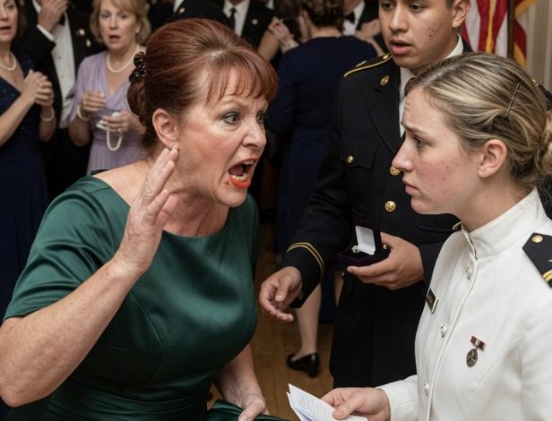 AT MY HUSBAND’S MILITARY BALL, MY MOTHER-IN-LAW GRABBED AN MP, POINTED AT ME IN MY DRESS WHITES, AND SCREAMED “ARREST HER” LIKE I WAS SOME STRANGER WHO’D STOLEN A UNIFORM, NEVER IMAGINING THAT AFTER SEVEN YEARS OF TREATING ME LIKE AN OUTSIDER, ONE ID SCAN, ONE COMMAND, AND THE SUDDEN SILENCE OF AN ENTIRE BALLROOM WOULD FINALLY FORCE HER TO SEE EXACTLY WHO SHE HAD BEEN INSULTING ALL ALONG