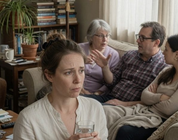 No one stopped her because they did not yet understand that she was no longer moving inside their design. She took a clean glass from the cabinet, filled it with water, and stood for three extra seconds watching the stream run because the sound gave her time to feel her heartbeat settle into something she could work with. Then she carried the glass back into the living room and placed it gently on the coffee table. The soft click of glass on wood cut through everyone’s assumptions like a pin through silk.