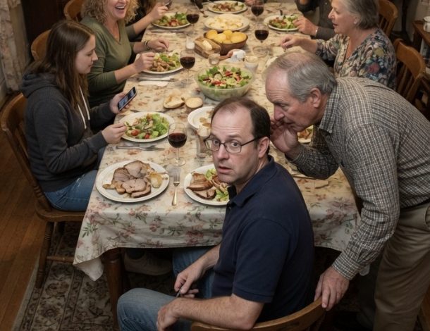 His voice stayed low, tucked beneath the table noise, beneath my uncle saying something unprintable about the quarterback, beneath the clatter of dishes and forks and my grandmother telling my cousin to stop leaning back in his chair.